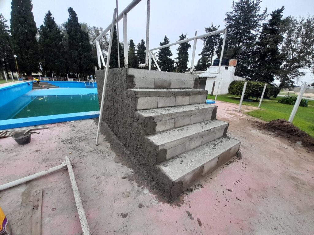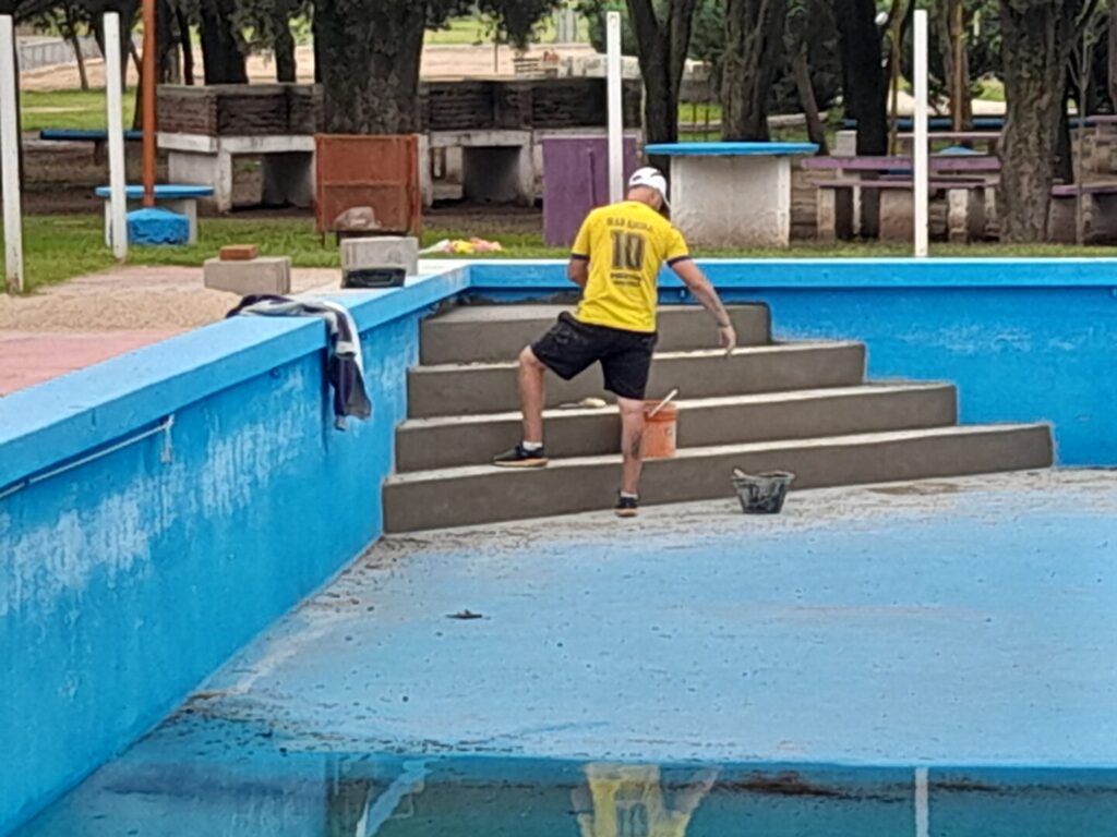 Balneario Municipal: Le hemos también agregado a estas obras la pileta del balneario municipal. Tuvimos un inconveniente este año debido a que tanto el tobogán como la escalera que baja en la parte panda de la pileta, la estructura era de caño, cuestión lógica, estando en el agua se han debilitado, así que hemos tomado la decisión de hacerlo de hormigón. Todo es material y ya está el tobogán hecho, rellenado, así que hay que dejar ahora los días que lleva de fraguado para que se seque.Y también hemos tomado la decisión después de muchos años de cerrar la pileta donde estaban los caños, pero nunca se cerró con el tejido y en el día viernes ya empezaron, inclusive cuando venía para acá fui a ver y estaban trabajando los muchachos, ya se empezó a extender el tejido para cerrar todo el perímetro de la pileta.