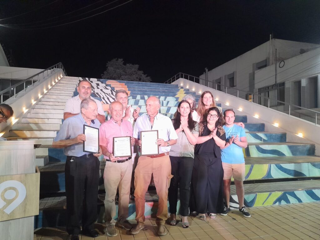 Los concejales acompañan a Danuncio Ressia, Carlos Acha y Raúl Medeot (recibió la distinción en nombre de su hermano Fernando).