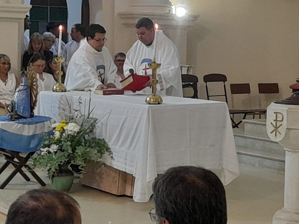 El sacerdote Maximiliano Chiaretta en la tarde noche de este pasado domingo, asumió la conducción pastoral de la parroquia Nuestra Señora de la Merced de Adelia María.