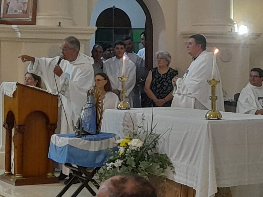 Al mismo tiempo, se realizó el acto de despedida del padre Pablo Silvetti quien se desempeñara durante 13 años al frente de esta localidad, junto a las comunidades de Monte de los Gauchos, Huanchilla y el Rastreador.