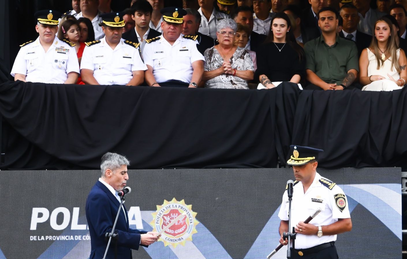 En un acto encabezado por el ministro de Seguridad, Juan Pablo Quinteros, este lunes tomaron juramento las nuevas autoridades de la cúpula de la Policía de la Provincia de Córdoba, en la explanada de la Jefatura de Policía.